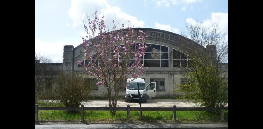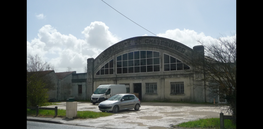 "Plus loin en sortant du bourg vous passez devant l'ancienne manufacture de chaussures. Fondée au début du XXème siècle c'est à partir de 1914 que la petite usine comprend un bâtiment en brique et en pierre de taille (donnant sur la rue), avec au rez-de-chaussée un magasin de commerce. A l'arrière l'atelier de fabrication se déploie sous une couverture en sheds, complétée en 1930 par une grande usine réalisée en partie en béton armé. Depuis 1960, la fabrication de pantoufle charentaise est abandonnée."